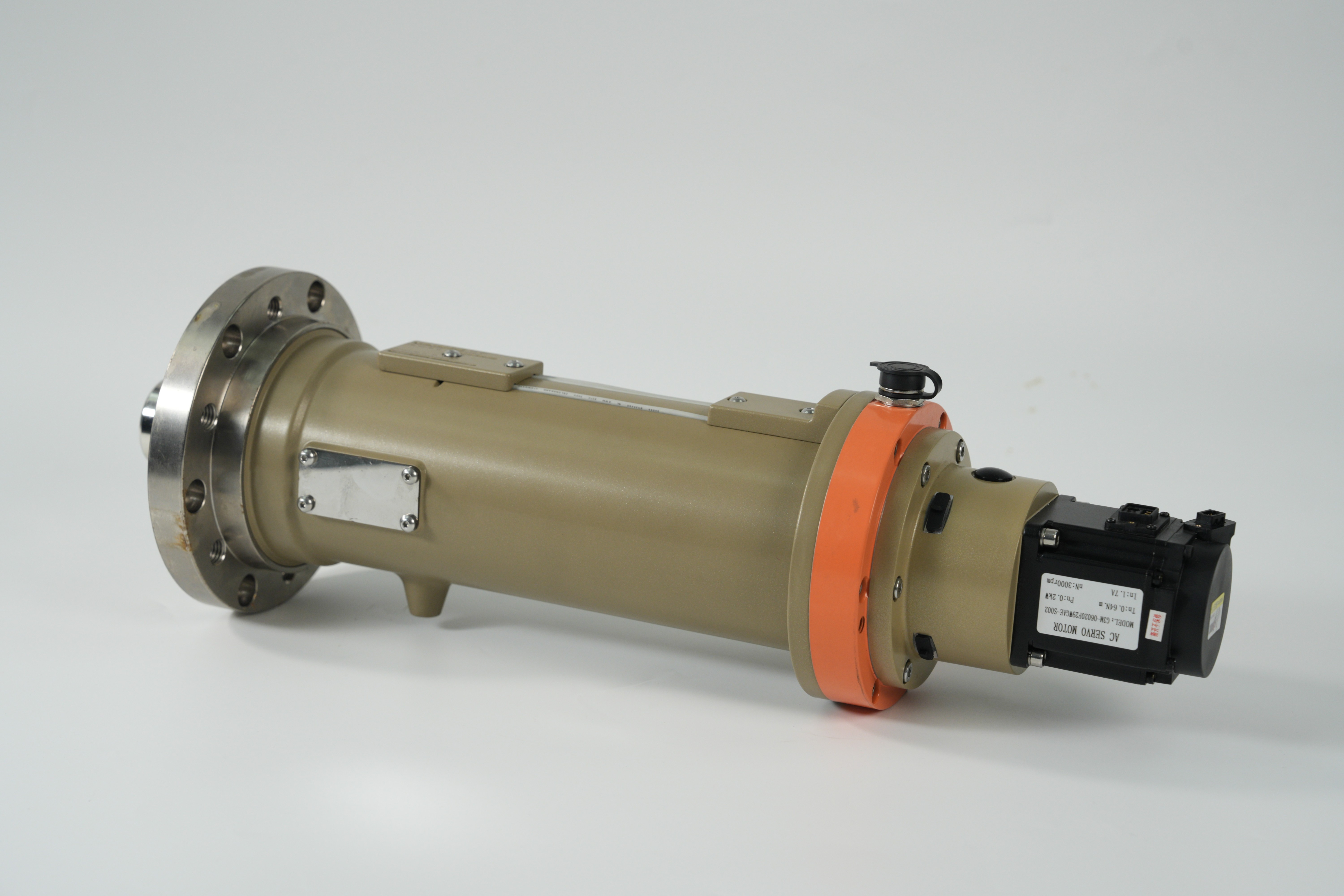 现场,雒乐进一步讲解了新产品的亮点。首先是节电,旋转智慧缸以伺服电机取代传统液压站油泵作为直接动力源,通过电机、减速机带动丝杠,将旋转运动转化为直线运动,实现快速精准夹紧。同时,刹车组件像“手刹”一样锁死丝杠螺母,无需电机持续工作,大大减少了耗电量。